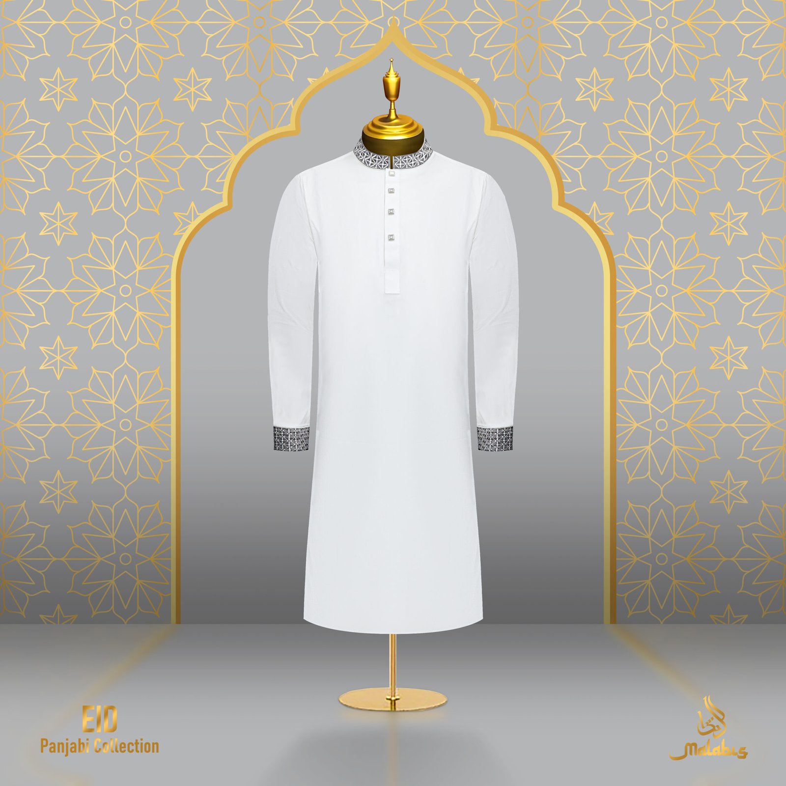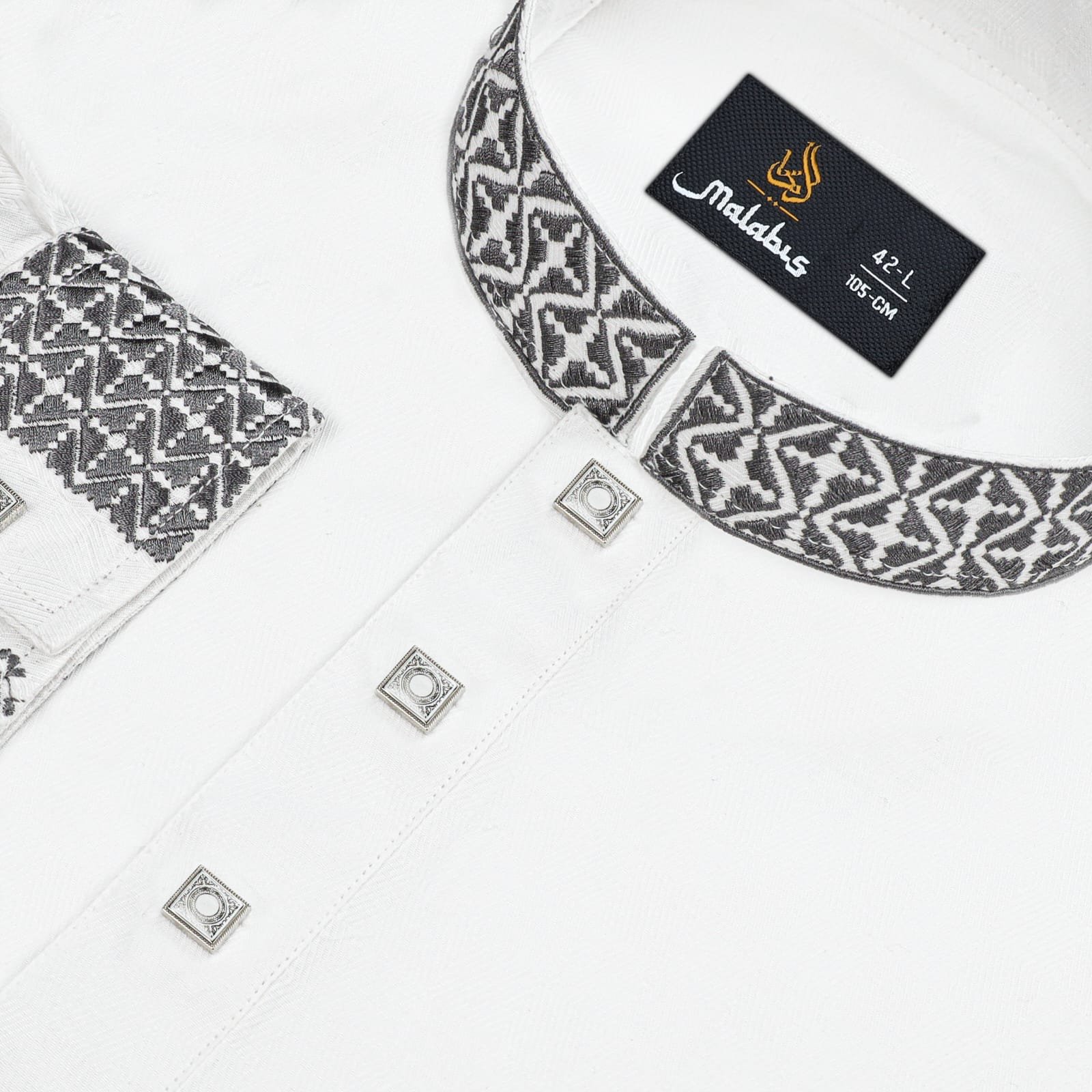কলার ও কাফ হাতায় এ্যাশ এমব্রয়ডারি, সাথে Luxury China Snap Button।